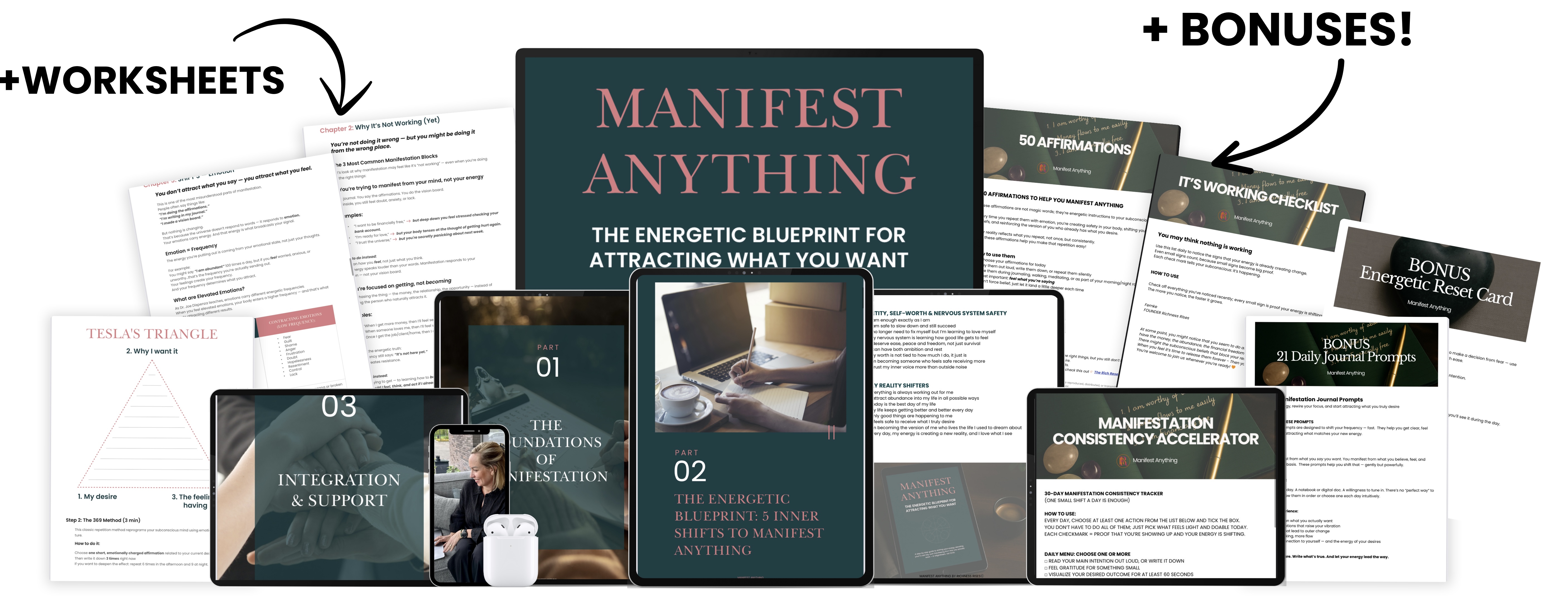 Worksheets with my favorite practices from Nikola, Tesla, Neville Goddard, Dr. Joe Dispenza, Louise Hay, Bob Proctor.